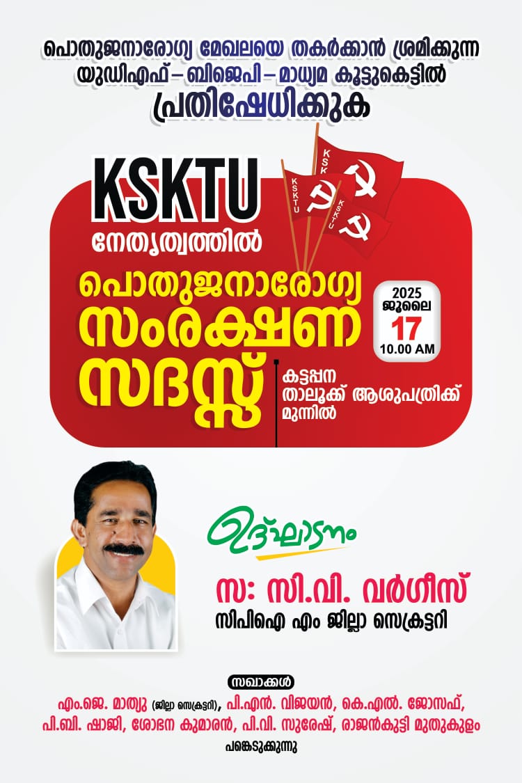 പൊതുജനാരോഗ്യ മേഖലയെ തകർക്കാനുള്ള യുഡിഎഫ്- ബിജെപി- മാധ്യമ ഗൂഢനീക്കത്തിനെതിരെ കെഎസ്കെടിയു കട്ടപ്പന ഏരിയ കമ്മിറ്റി