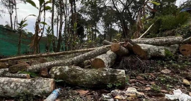 ഉരുൾപൊട്ടലിനെ തുടർന്ന് നാശനഷ്ടം ഉണ്ടായ പ്രദേശത്തിന് സമീപത്തുനിന്നാണ് മരങ്ങൾ മുറിച്ചുകടത്തിയത്. സംഭവത്തിൽ വനം വകുപ്പ് കേസെടുത്തു. ശാന്തൻപാറ വില്ലേജിൽ മതികെട്ടാൻ ചോല ദേശീയ ഉദ്യാനത്തോട് ചേർന്നു കിടക്കുന്ന ഒന്നര ഏക്കർ ഭൂമിയിൽ നിന്നും ഒരാഴ്ച മുൻപാണ് മരങ്ങൾ മുറിച്ചു കടത്തിയത്. എം ബൊമ്മയ്യൻ എന്നയാളുടെ പേരിലുള്ള ഭൂമിയിൽ നിന്നാണ് മരങ്ങൾ വെട്ടിമാറ്റിയത്.