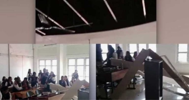 ഒന്നാം വർഷ വിദ്യാർത്ഥികളുടെ ക്ലാസ് നടക്കുന്നതിനിടെ സീലിംഗ് തകർന്നു വീണത്. സംഭവത്തിൽ ആർക്കും പരിക്കില്ല. ക്ലാസ്സിലെ സീലിംഗ് ചോരുന്ന കാര്യം നേരെത്തെ വിദ്യാത്ഥികള് ശ്രദ്ധയിൽപ്പെടുത്തിയിരുന്നുവെങ്കിലും മാറ്റിയിരുന്നില്ല.