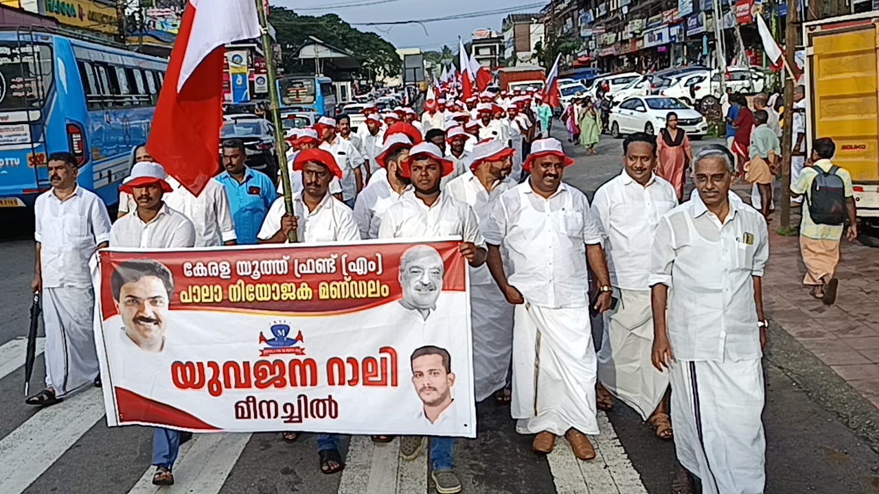 നിയോജക മണ്ഡലം പ്രസി.തോമസ് കുട്ടി വരിക്കയിൽ, ടോബിൻ കെ.അലക്സ്, ബൈജു പുതിയിടത്തുചാലിൽ, ഡിനോ ചാക്കോ, സിജോ പ്ലാത്തോട്ടം, ടോബി തൈപ്പറമ്പിൽ സുനിൽ പയ്യപ്പിള്ളി, ജയിംസ് പൂവത്തോലി, അവിരാച്ചൻ ചൊവ്വാറ്റുകുന്നേൽ എന്നിവർ നേതൃത്വം നൽകി. പന്ത്രണ്ട് പഞ്ചായത്തുകളിൽ നിന്നും പാലാ നഗരസഭയിൽ നിന്നും യുവജനങ്ങൾ ചുവപ്പും വെള്ളയും കലർന്ന ദ്വിവർണ്ണ തൊപ്പി അണിഞ്ഞ് പതാകയും ഏന്തിയാണ് റാലിയിൽ പങ്കെടുത്തത്..