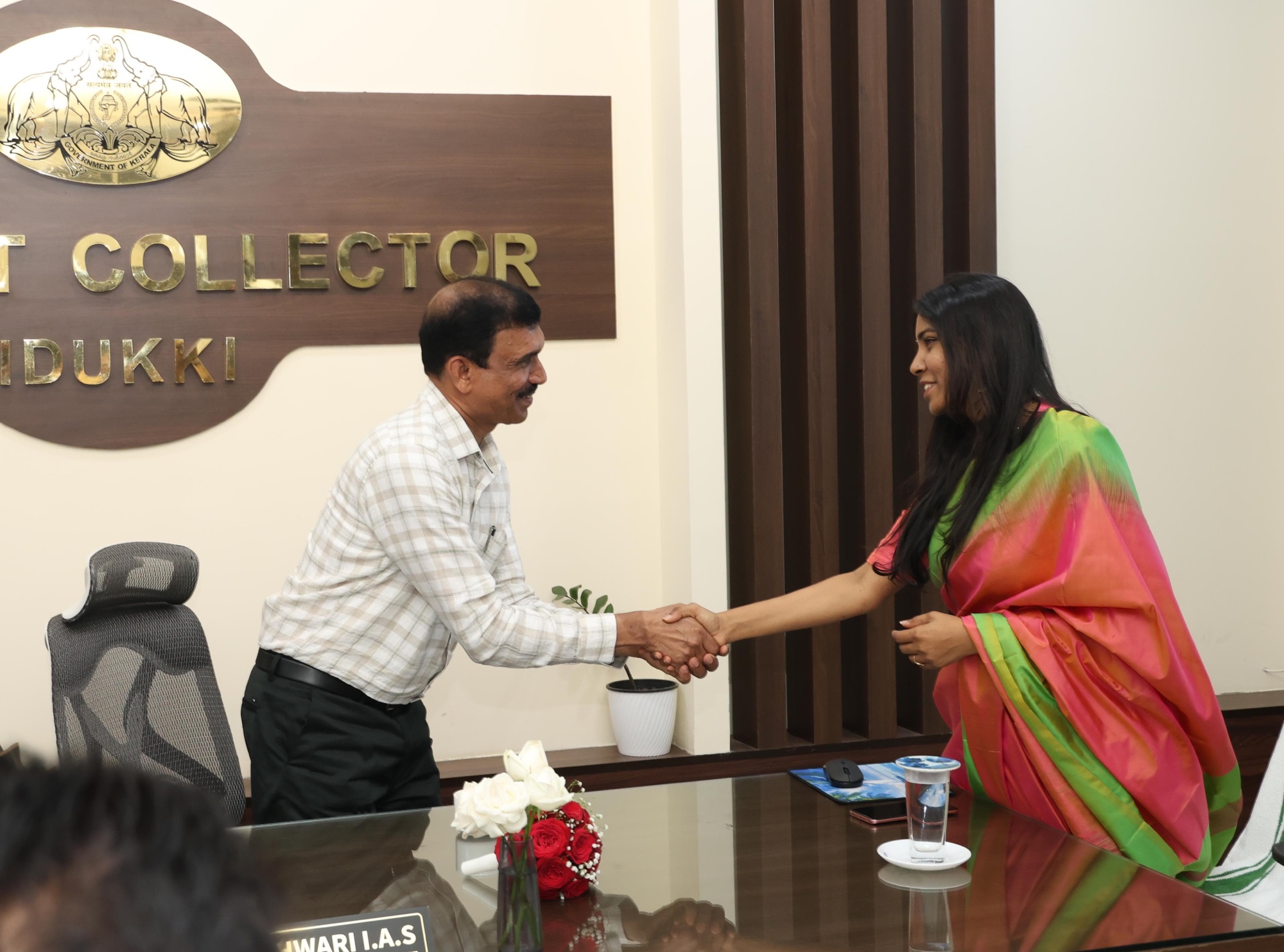 ജില്ലാ പഞ്ചായത്ത് പ്രസിഡന്റ് രാരിച്ചന് നീറണാംകുന്നേല്, അഡീഷണല് ജില്ലാ മജിസ്ട്രേറ്റ് ഷൈജു പി ജേക്കബ്, ഡപ്യൂട്ടി കളക്ടര്മാര് എന്നിവരുടെ നേതൃത്വത്തില് ഡോ.ദിനേശന് ചെറുവാട്ടിനെ സ്വീകരിച്ചു. തുടര്ന്ന് ചേംബറിലെത്തി വി. വിഗ്നേശ്വരിയില് നിന്നും ചുമതല ഏറ്റെടുത്തു. സബ് കളക്ടര്മാരായ അനൂപ് ഗാര്ഗ്, വി. എം ആര്യ എന്നിവര് സന്നിഹിതരായിരുന്നു. ജില്ലാ പോലീസ് മേധാവി കെ. എം സാബു മാത്യു, വിവിധ വകുപ്പുകളുടെ ജില്ലാതല മേധാവികള് അടക്കമുള്ളവര് കളക്ടറെ സന്ദര്ശിച്ചു.