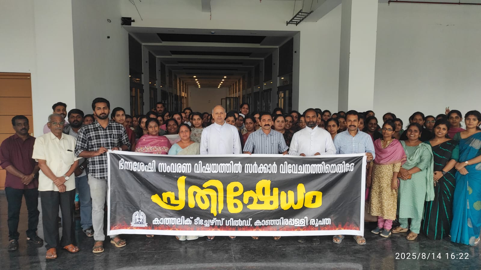 എയ്ഡഡ് സ്കൂൾ നിയമനങ്ങളിലെ വിവേചനത്തിനെതിരെ കാത്തലിക് ടീച്ചേഴ്സ് ഗിൽഡ് കാഞ്ഞിരപ്പള്ളി രൂപത സമിതിയുടെ നേതൃത്വത്തിൽ നടത്തിയ പ്രതിഷേധം.