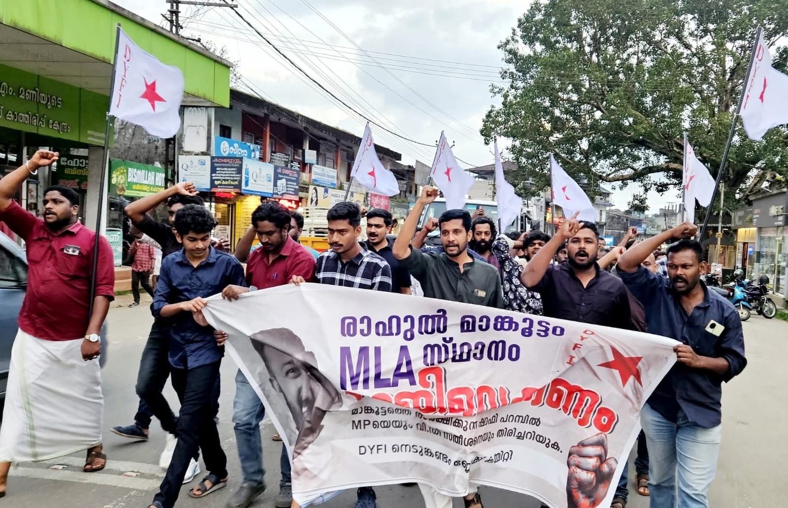 രാഹുൽ മാങ്കൂട്ടം MLA സ്ഥാനം രാജി വെക്കണമെന്നാവശ്യപ്പെട്ട് DYFI പ്രവർത്തകർ നെടുങ്കണ്ടത്ത് പ്രകടനം നടത്തി