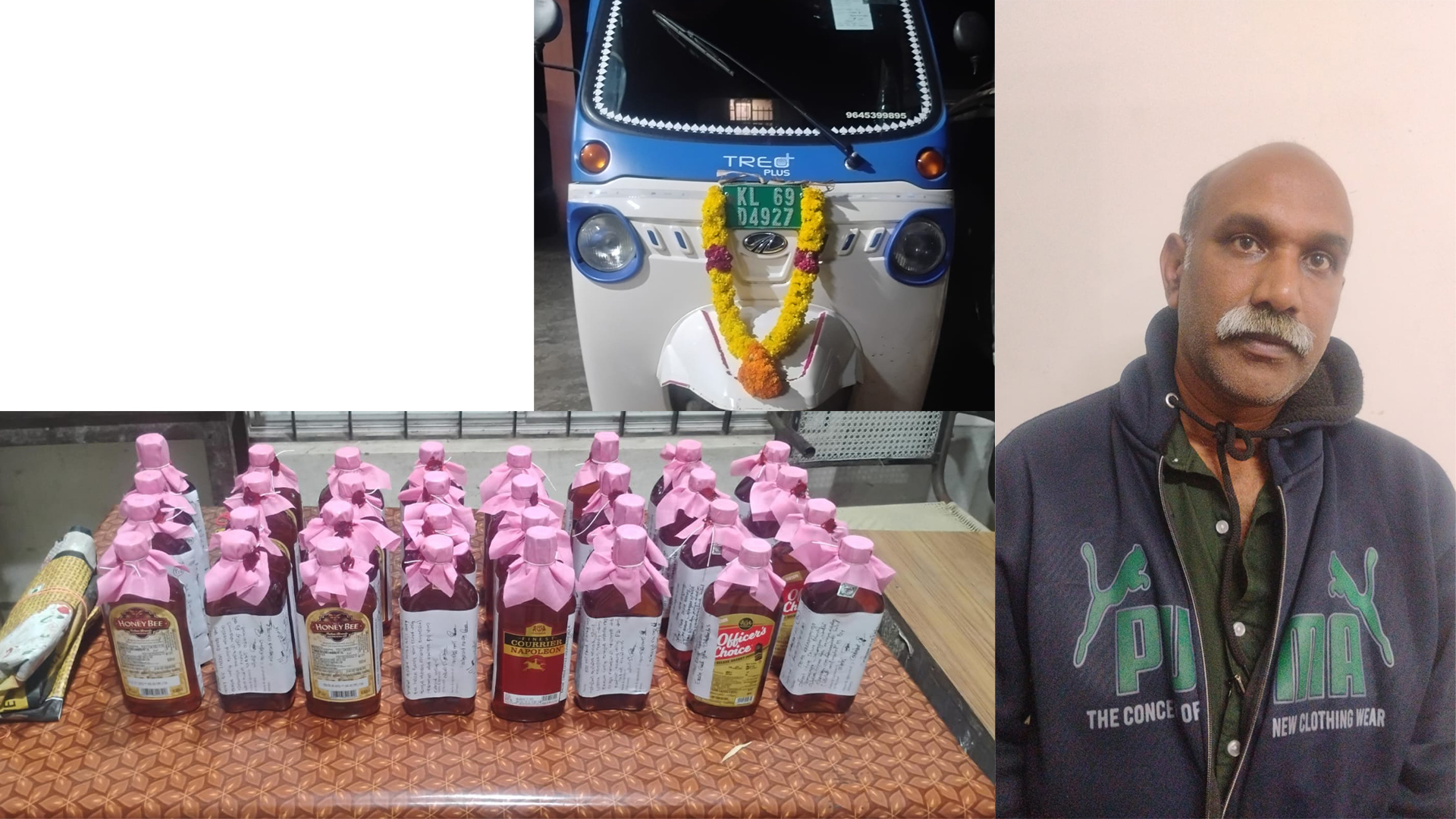ഓണക്കാല പ്രത്യേക പരിശോധനകളുടെ ഭാഗമായി ഉടുമ്പൻചോല എക്സൈസ് സർക്കിൾ സംഘം ഇന്നലെ രാത്രി നടത്തിയ സ്ട്രൈക്കിഗ് ഫോഴ്സ് പരിശോധനയിലാണ് 16 ലിറ്റർ മദ്യം അനധികൃതമായി കടത്തിക്കൊണ്ടു ഓട്ടോറിക്ഷയും മദ്യവും പിടിച്ചെടുത്തത്. സേനാപതി അഞ്ചുമുക്ക് മേഖലയിലാണ് പരിശോധന നടന്നത്.മേലെചെമ്മണ്ണാർ കടുവപാറക്കൽ സിനിറ്റിനെ പ്രതിയാക്കി കേസും എടുത്തിട്ടുണ്ട്. പലപ്പോഴായി ബിവറേജസ് ഷോപ്പിൽ നിന്നും വാങ്ങി സൂഷിച്ചതാണ് മദ്യം എന്നാണ് ഇയാൾ നൽകിയ മൊഴി. ഉടുമ്പൻചോല എക്സൈസ് സർക്കിൾ ഇൻസ്പെക്ടർ ജി. വിജയകുമാറിൻ്റെ നിർദ്ദേശാനുസരണം അസിസ്റ്റൻ്റ് എക്സൈസ് ഇൻസ്പെക്ടർ പ്രകാശ് J, ഉദ്യോഗസ്ഥരായ അസീസ് K S , അനൂപ് കെ എസ്, നൗഷാദ് എം, അരുൺരാജ്, അരുൺ മുരളീധരൻ,അരുൺ ശശി, റെജി പി സി എന്നിവർ പങ്കെടുത്തു.
