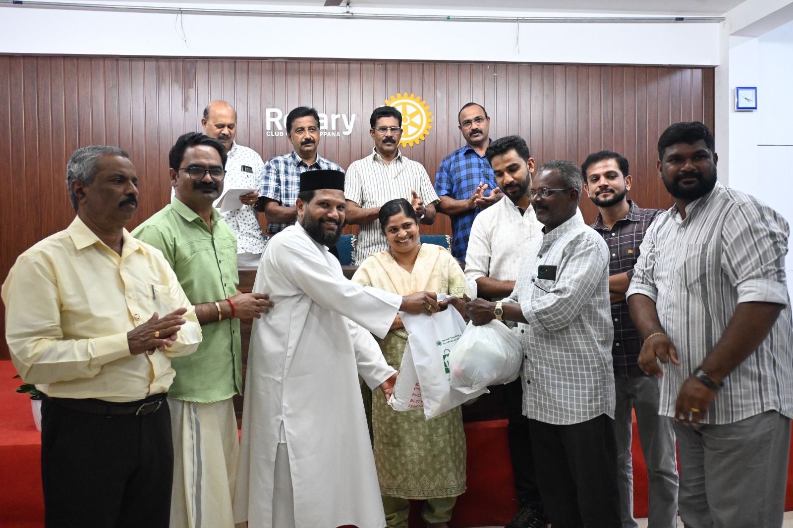 ക്ലബ് പ്രസിഡന്റ്‌ ഡോ. വിനോദ്കുമാറിന്റെ നേതൃത്വത്തിൽ ഉത്രാടം ദിവസം ക്ലബ് അങ്കണത്തിലും ഓണ ദിവസം രോഗികളുടെ വീടുകളിൽ റോടെറിയൻ മാർ നേരിട്ട് എത്തിച്ചുമാണ് കിറ്റുകൾ കൈമാറിയത്.