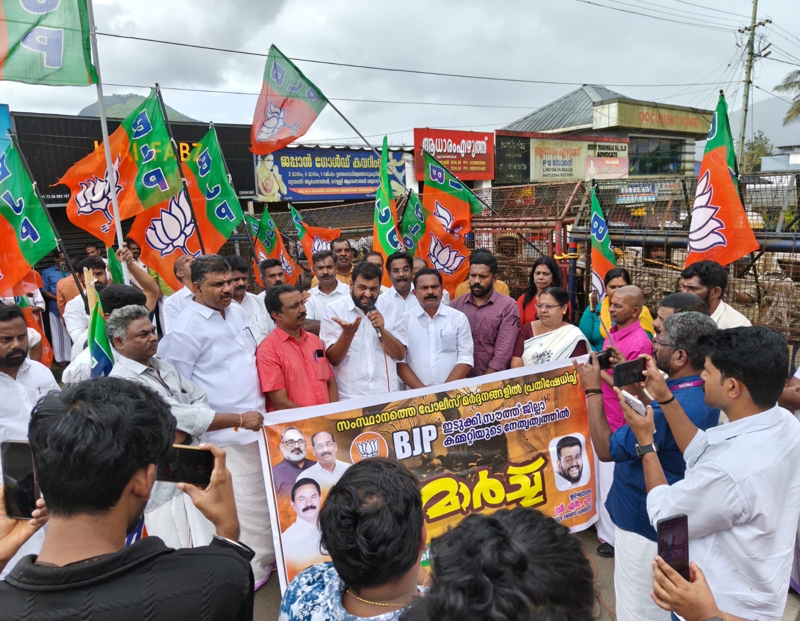 ഇടുക്കി കവലയിൽ നിന്നും ആരംഭിച്ച പ്രകടനം ഹൗസിംഗ് ബോർഡ് ഷോപ്പിംഗ് കോംപ്ലക്സിന് സമീപത്ത് പോലീസ് ബാരിക്കേഡ് വച്ച് തടഞ്ഞു.