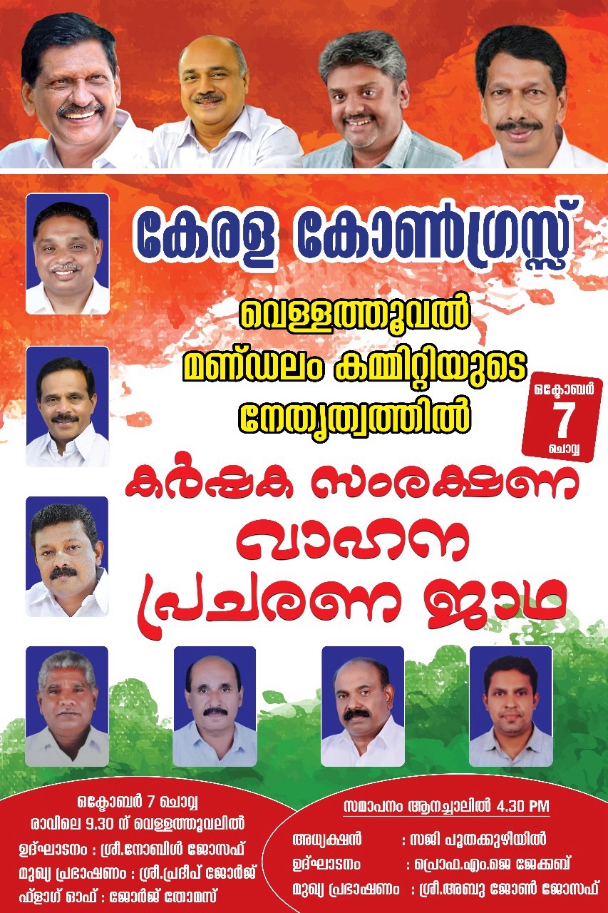 നിർമ്മാണ നിരോധനം പിൻവലിക്കുക, ഭൂപതിവ് നിയമ ഭേദഗതി ചട്ടങ്ങളിലെ കർഷക – ജനവിരുദ്ധ നിർദ്ദേശങ്ങൾ റദ്ദാക്കുക, കല്ലാർകുട്ടി ഡാം മേഖലയിലെ പത്ത് ചെയിൻ പട്ടയ പ്രശ്നങ്ങൾ പരിഹരിക്കുക, ദേശീയ പാതയിലെ നേര്യമംഗലം – വാളറ റോഡ് നിർമ്മാണത്തിനാവശ്യമായ സത്യവാങ്മൂലം ഹൈക്കോടതിയിൽ നൽകി റോഡ് നിർമ്മാണം പുനരാരംഭിക്കുക, വന്യമൃഗശല്യം തടയാൻ നടപടി സ്വീകരിക്കുക തുടങ്ങിയ ആവശ്യങ്ങളുന്നയിച്ചു കൊണ്ട് കേരളാ കോൺഗ്രസ് വെള്ളത്തൂവൽ മണ്ഡലം കമ്മറ്റി ഏഴിന് [07-10-2025 ചൊവ്വ ] കർഷക സംരക്ഷണ സമര ജാഥ നടത്തുന്നു…… രാവിലെ 9.30 – ന് വെള്ളത്തൂവലിൽ പാർട്ടി സംസ്ഥാന ഉന്നതാധികാര സമിതിയംഗം നോബിൾ ജോസഫ് ഉദ്ഘാടനം ചെയ്യും. പി.വി.അഗസ്റ്റിൻ അധ്യക്ഷത വഹിക്കും. മണ്ഡലം പ്രസിഡണ്ട് സജി പൂതക്കുഴി വിഷയാവതരണം നടത്തും. ജില്ലാ സെക്രട്ടറിയേറ്റംഗം പ്രദീപ് ജോർജ് മുഖ്യപ്രഭാഷണം നടത്തും.ബ്ലോക്ക് കോൺഗ്രസ് വൈസ് പ്രസിഡണ്ടുമാരായ റോയി പാലയ്ക്കൽ, സജികുമാർ, അമൽ പള്ളിക്കര എന്നിവർ പ്രസംഗിക്കും. ബ്ലോക്ക് കോൺഗ്രസ് മുൻ പ്രസിഡണ്ട് ജോർജ് തോമസ് സമര ജാഥ ഫ്ളാഗ് ഓഫ് ചെയ്യും….. കല്ലാർകുട്ടി, ആയിരമേക്കർ, കൂമ്പൻപാറ ഫോറസ്റ്റ് ഓഫീസ് ജംഗ്ഷൻ, ശെല്യാംപാറ , മുതുവാൻകുടി, ഈട്ടി സിറ്റി, മേരിലാന്റ്, പോത്തുപാറ എന്നീ സ്ഥലങ്ങളിൽ പര്യടനം നടത്തും…………………… കുഞ്ചിത്തണ്ണിയിലെ പൊതുസമ്മേളനം കേരള കർഷകയൂണിയൻ സംസ്ഥാനപ്രസിഡണ്ട് വർഗീസ് വെട്ടിയാങ്കൽ ഉദ്ഘാടനം ചെയ്യും. പീറ്റർ പൂണേലിൽ അധ്യക്ഷത വഹിക്കും. കോൺഗ്രസ് മണ്ഡലം പ്രസിഡണ്ട് സി.ഡി. ടോമി, ബ്ലോക്ക് സെക്രട്ടറിമാരായ കെ.എൻ.സജീവ്, ഗിരി കുമാർമുസ്ലീംലീഗ് ജില്ലാക്കമ്മറ്റിയംഗം ഹനീഫാ അറയ്ക്കൽ യൂത്ത് കോൺഗ്രസ് മണ്ഡലം പ്രസിഡണ്ട് ഗുണശേഖരൻ യൂത്ത് ഫ്രണ്ട് മണ്ഡലം പ്രസി ഡണ്ട് ബോബിൻ ജോയി കേരളാ കോൺഗ്രസ് മണ്ഡലം വൈസ് പ്രസിഡണ്ട് ജോർജ് കുന്നും പുറത്ത് എന്നിവർ പ്രസംഗിക്കും……………….. ആനച്ചാലിൽ നടക്കുന്ന സമാപന സമ്മേളനം യു.ഡി.എഫ് ജില്ലാ കൺവീനർ പ്രൊഫ.എം.ജെ.ജേക്കബ് ഉദ്ഘാടനം ചെയ്യും. മണ്ഡലം പ്രസിഡണ്ട് സജി പൂതക്കുഴിയിൽ അധ്യക്ഷതവഹിക്കും. സംസ്ഥാന കോ-ഓർഡിനേറ്റർ അപു ജോൺ ജോസഫ് പ്രോഗ്രാം കോ-ഓർഡിനേറ്റർ സാബു കുന്നുംപുറത്ത് ദേവികുളം നിയോജകമണ്ഡലം പ്രസിഡണ്ട് ബാബു കീച്ചേരിൽ യു.ഡി.എഫ് നിയോജകമണ്ഡലം ചെയർമാൻ എം.ബി സൈനുദ്ദീൻ കൺവീനർ ഓ .ആർ.ശശി സി.എം.പി. ജില്ലാ സെക്രട്ടറി കെ.എ. കുര്യൻ, ജെ.എസ്.എസ് സംസ്ഥാന വൈസ് പ്രസിഡണ്ട് പി.സി. ജയൻ മുസ്ലീംലീഗ് താലൂക്ക് പ്രസിഡണ്ട് ബഷീർ ഡി.സി.സി. മെമ്പർ റ്റി.ജി സോമൻ കേരളാ കോൺഗ്രസ് സംസ്ഥാനകമ്മറ്റിയംഗങ്ങളായ പി.വി.അഗസ്റ്റിൻ, കുര്യാക്കോസ് ചേലമൂട്ടിൽ, ജില്ലാ ട്രഷറർ മാത്യൂസ് തെങ്ങുംകുടി ജില്ലാ സെക്രട്ടറിയേറ്റംഗം ലാലു മാടപ്പാട്ട് കർഷക യൂണിയൻ ജില്ലാ സെക്രട്ടറി പ്രവീൺ ജോസ് നിയോജകമണ്ഡ