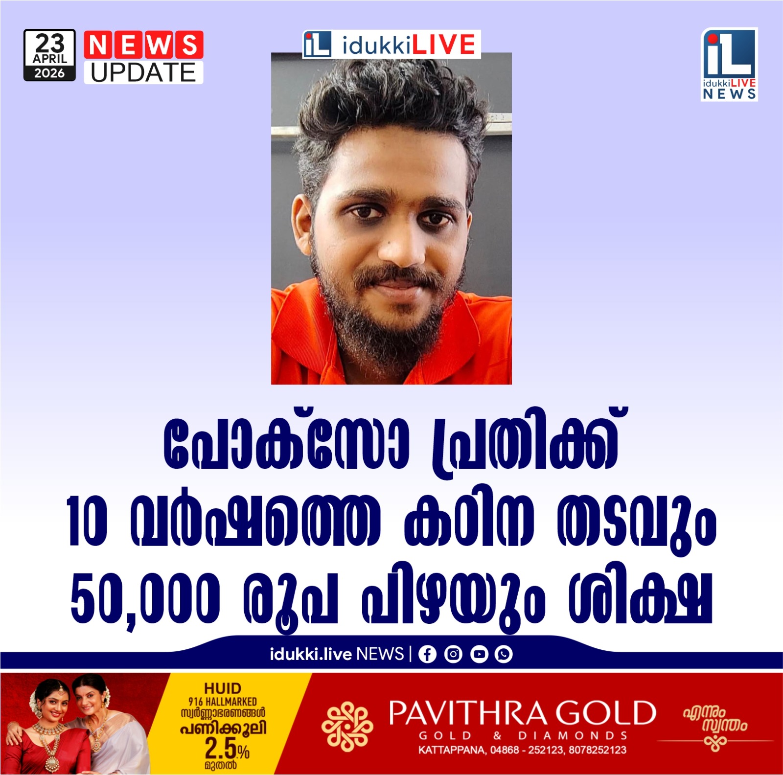 പോക്സോ പ്രതിക്ക് 10 വർഷത്തെ കഠിന തടവും 50,000/- രൂപ പിഴയും ശിക്ഷ.