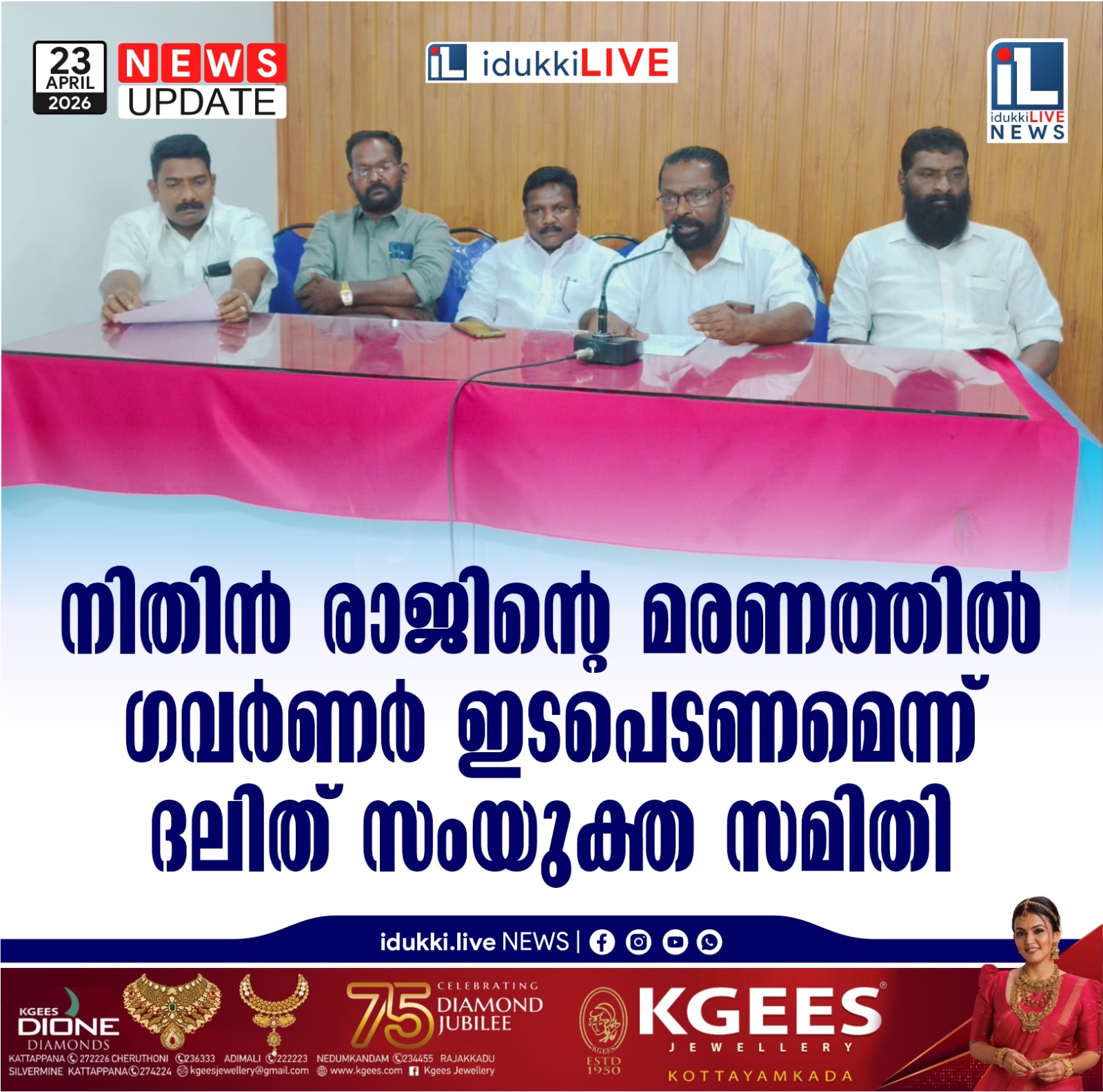 നിതിൻ രാജിന്റെ മരണത്തിൽ ഗവർണർ ഇടപെടണമെന്ന് ദലിത് സംയുക്ത സമിതി