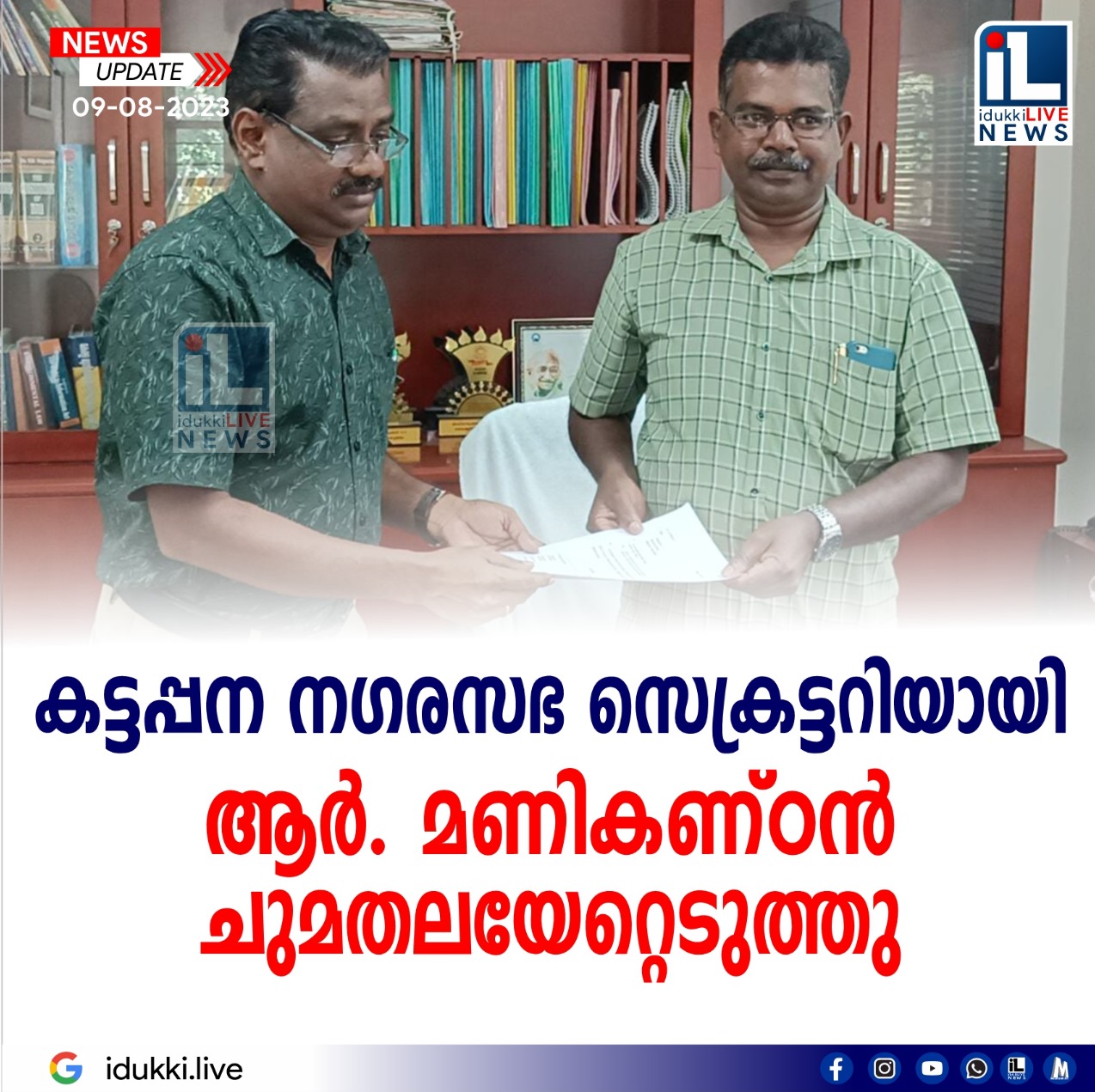 കട്ടപ്പന നഗരസഭ സെക്രട്ടറിയായി ആർ. മണികണ്ഠൻ ചുമതലയേറ്റെടുത്തു