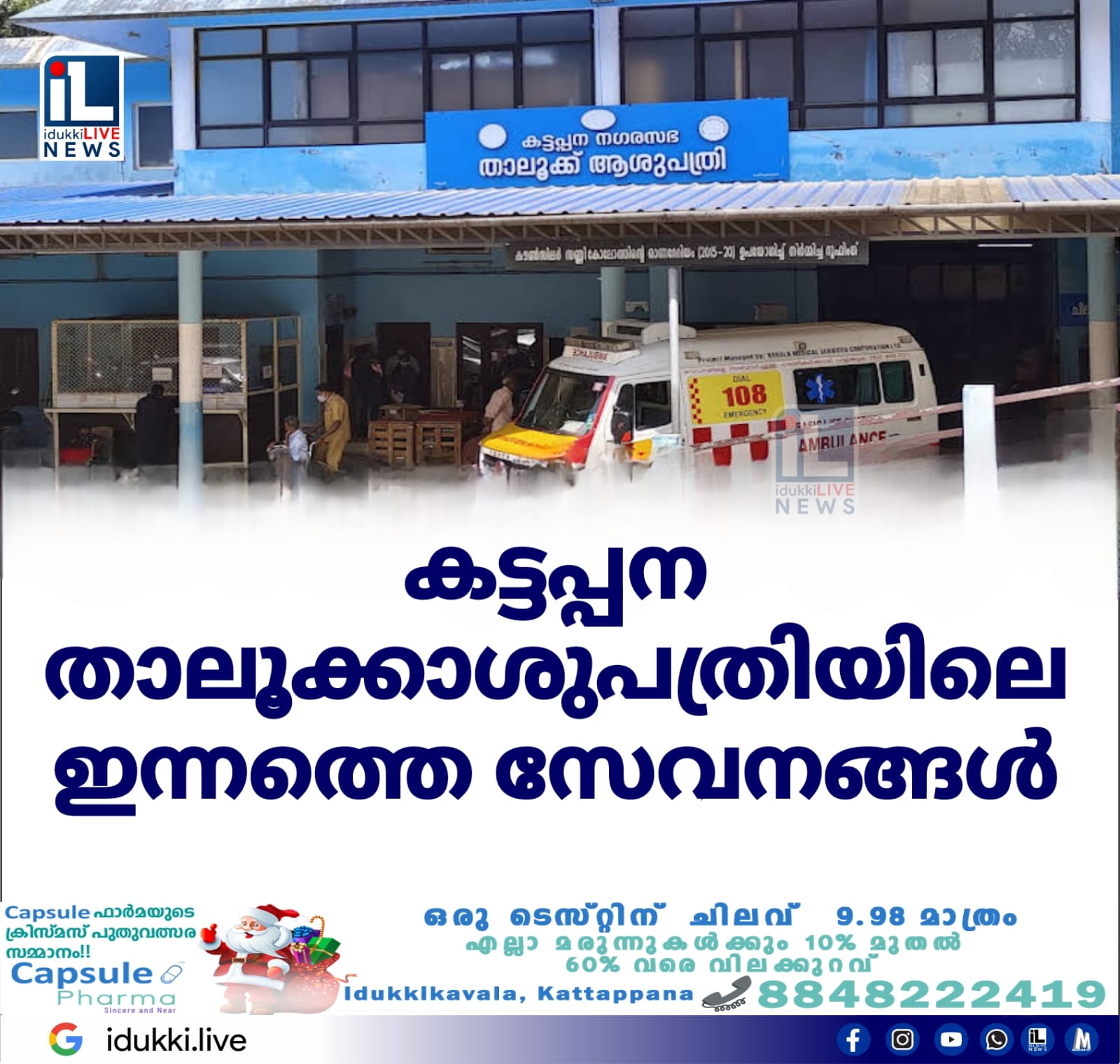 കട്ടപ്പന താലൂക്ക് ആശുപത്രിയിലെ ഇന്നത്ത സേവനങ്ങൾ👇Physician,ortho,paediatric, dental, general op