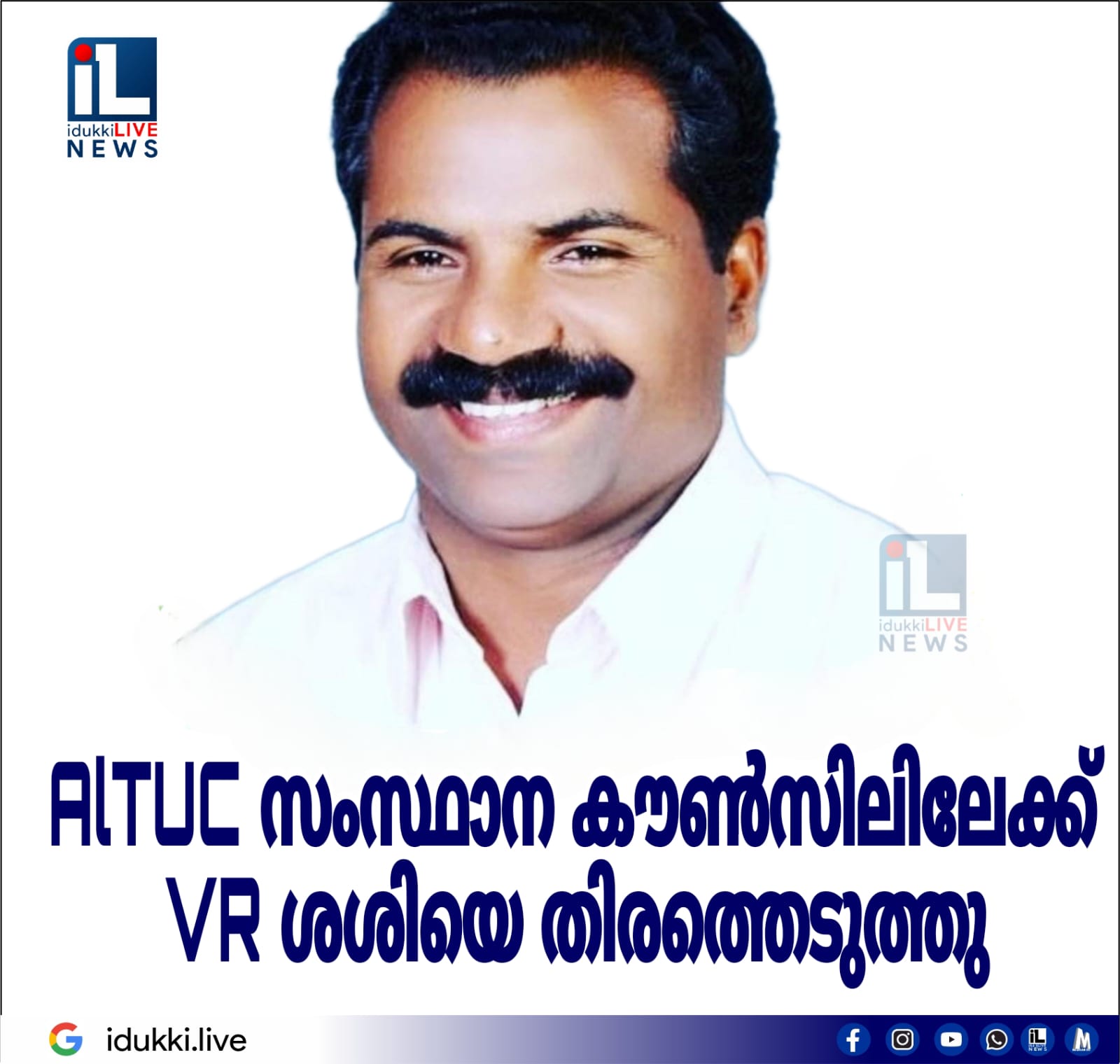 AlTUC സംസ്ഥാന കൗൺസിലിലേക്ക് VR ശശിയെ തിരത്തെടുത്തു.നിലവിൽ CPI കട്ടപ്പന മണ്ഡലം സെക്രട്ടറിയാണ് VR ശശി