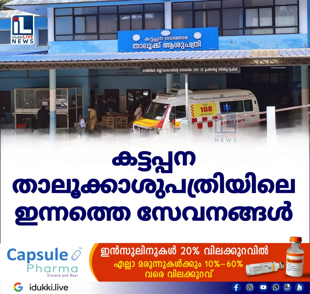 കട്ടപ്പന താലൂക്ക് ആശുപത്രി ഇന്നത്തെ സേവനങ്ങൾ Paediatric, general op